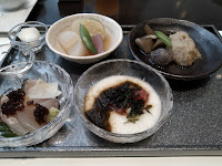 トレーに置いてトングで勝手に取ってもらうという方式をそのまま採用することはできない。もしやるなら,そのたびビニール製の手袋をはめてもらうか,でなければトングを使わずにすむように予め小分けにして器に入れて用意するか。東京ステーションホテルでは後者を採用。コロナ以前からそうしている部分が多かったから,それが自然なのではあろうけれど。